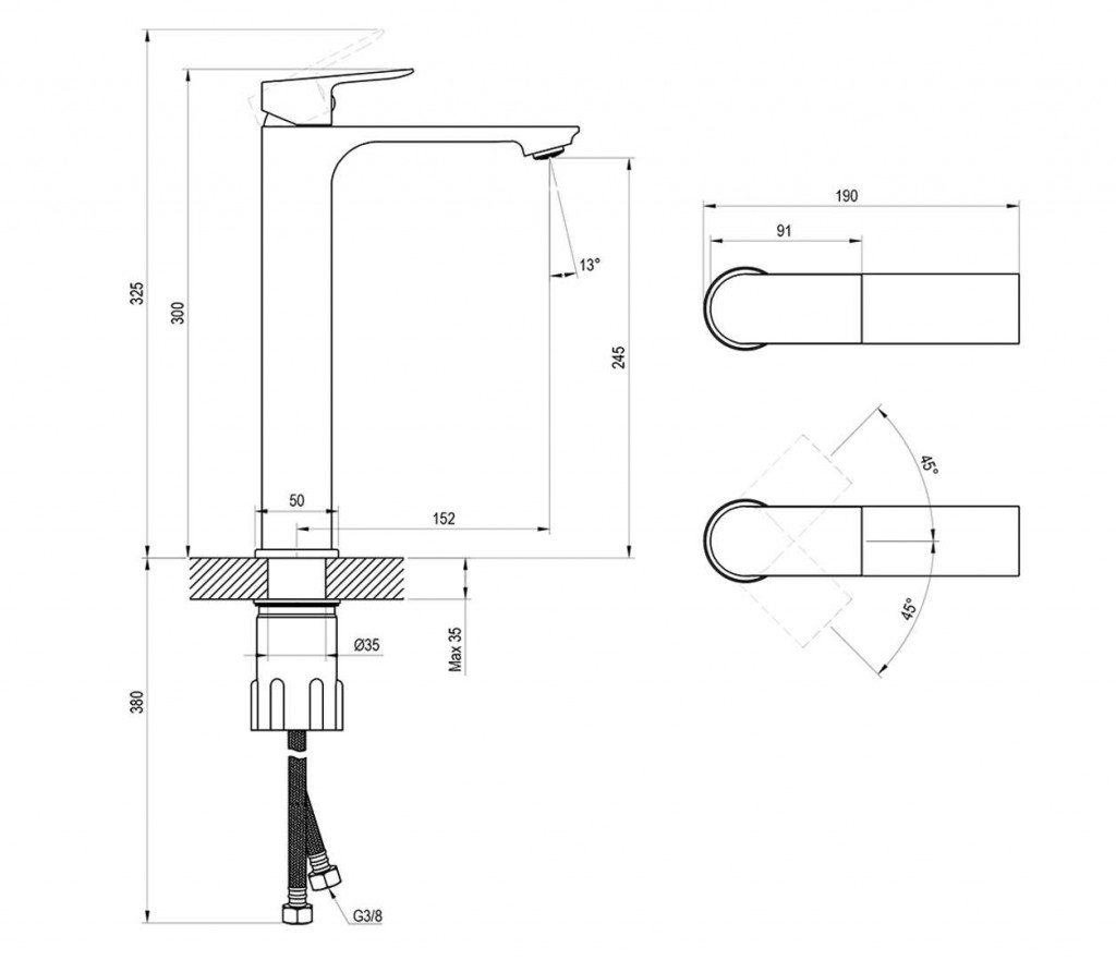 - připojení G 3/8", flexibilní hadičky 450 mm