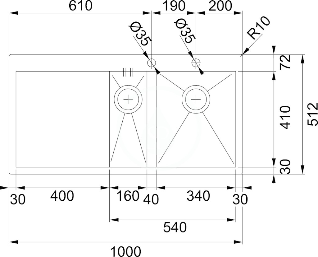 Nerezový dřez PPX 251/651 /7 TL s odkapávací plochou vlevo