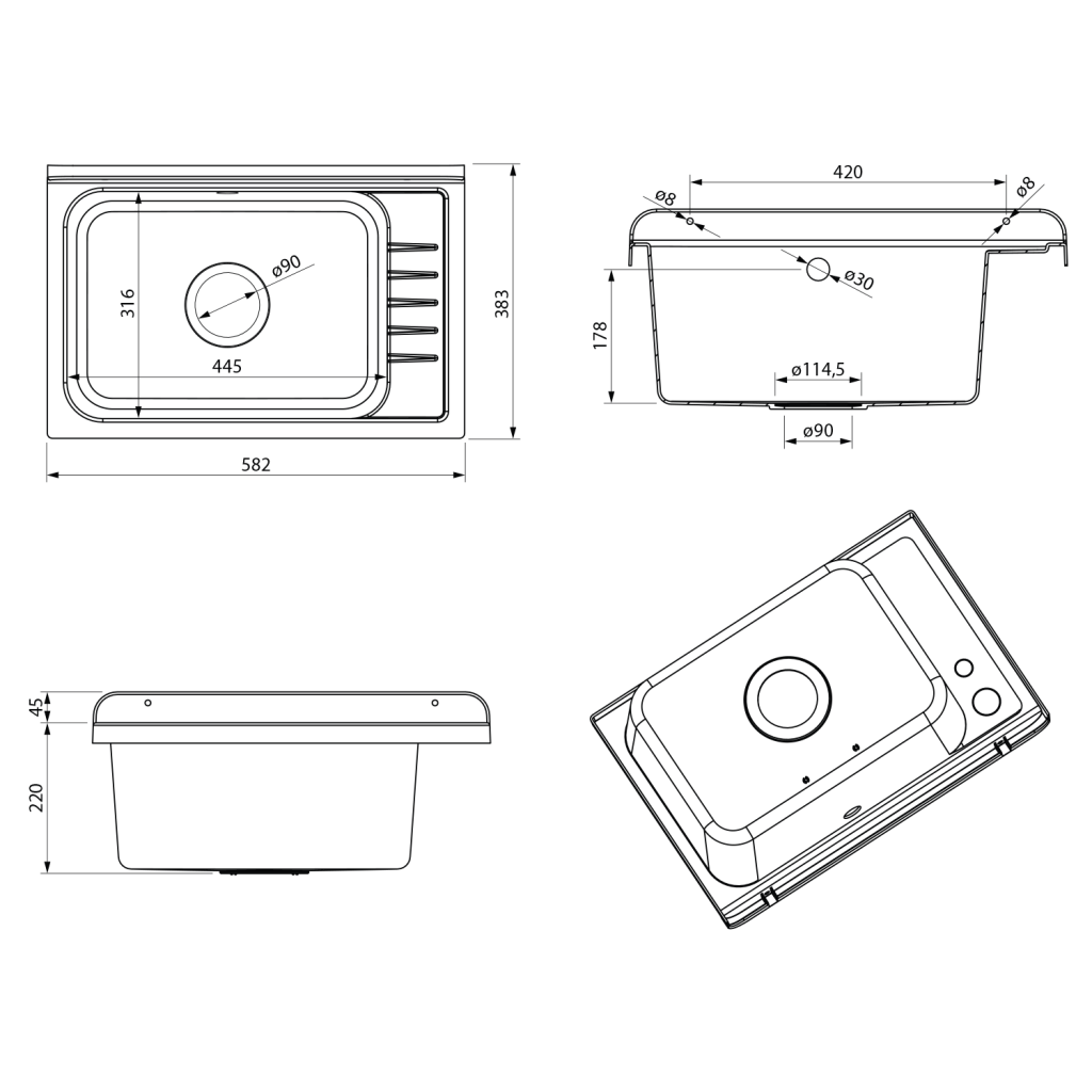 - Výpust a sifon s přepadovou soupravou jsou součástí balení výlevky.