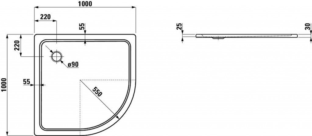 Čtvrtkruhová sprchová vanička s protiskluzovou ochranou