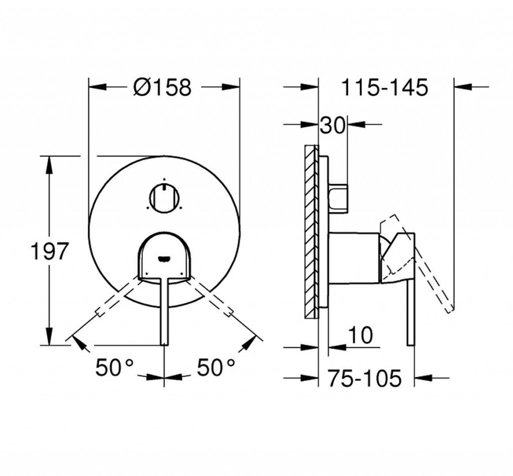 - kovová rozeta s možností dodatečného upevnění polohy až o 6°