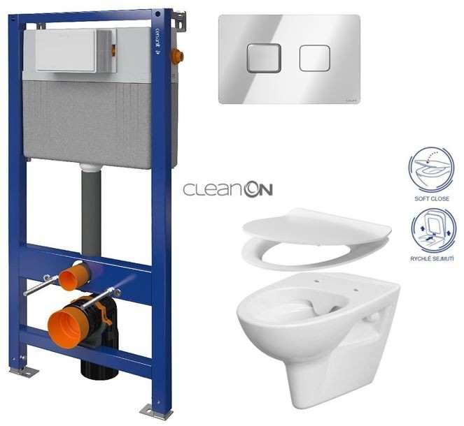 CERSANIT/S - CERSANIT POD. SYSTÉM AQUA 52 PNEU S QF + TLAČÍTKO SQUARE CHROM + WC CERSANIT CLEANON PARVA + SEDÁTKO (S97-062 SQCR PA2)