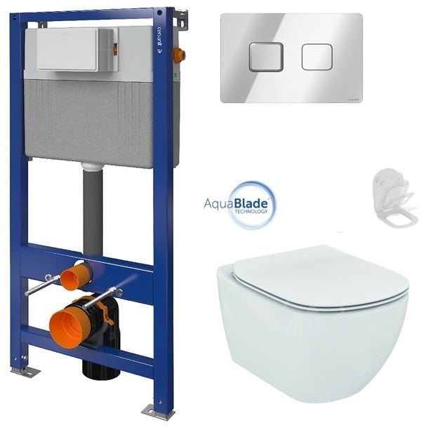 CERSANIT/S - CERSANIT POD. SYSTÉM AQUA 52 PNEU S QF + TLAČÍTKO SQUARE CHROM + WC Ideal Standard Tesi se sedátkem SoftClose, AquaBlade (S97-062 SQCR TE1)