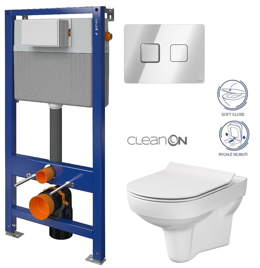 CERSANIT POD. SYSTÉM AQUA 52 PNEU S QF + TLAČÍTKO SQUARE CHROM + WC CERSANIT CITY NEW CLEANON + WC SEDÁTKO SLIM (S97-062 SQCR CI2)