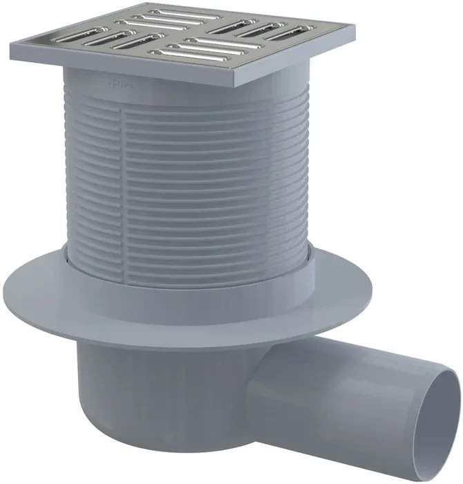 Podlahová vpust 105 × 105/50 boční, mřížka nerez, kombinovaná zápachová uzávěra SMART