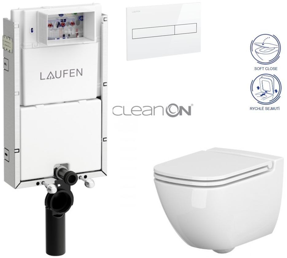 Závěsná mísa CASPIA NEW CLEAN ON /bez oplachového kruhu/ se zadním odtokem, funkce splachování 2/4l, 25,/5l nebo 3/5l.