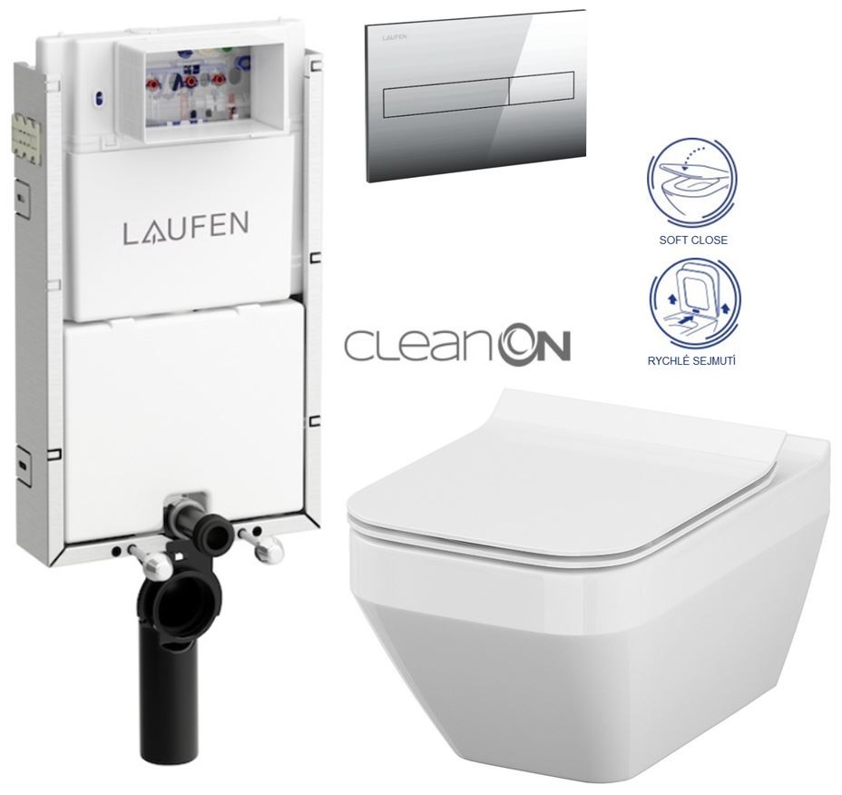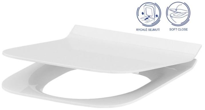 - SOFT CLOSE /volně padající/, s jednoduchým sejmutím a upevněním sedátka pomocí jednoho tlačítka.