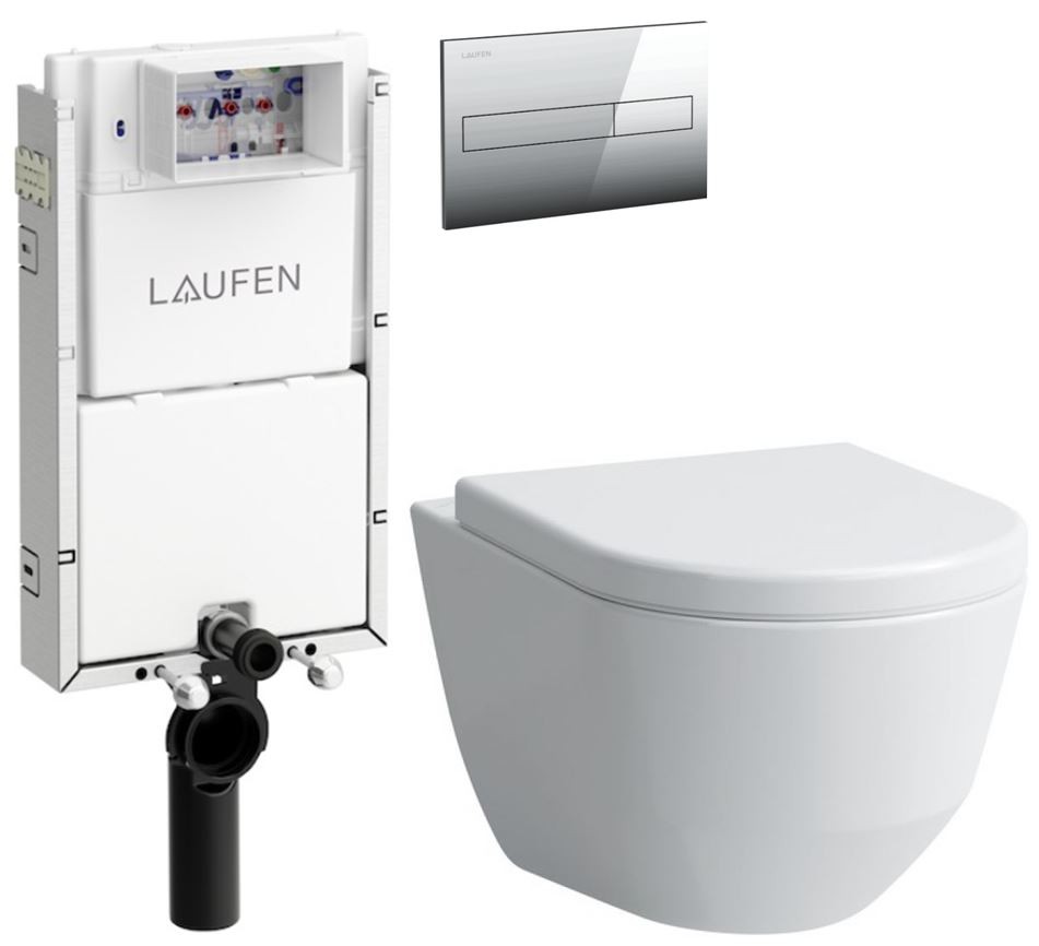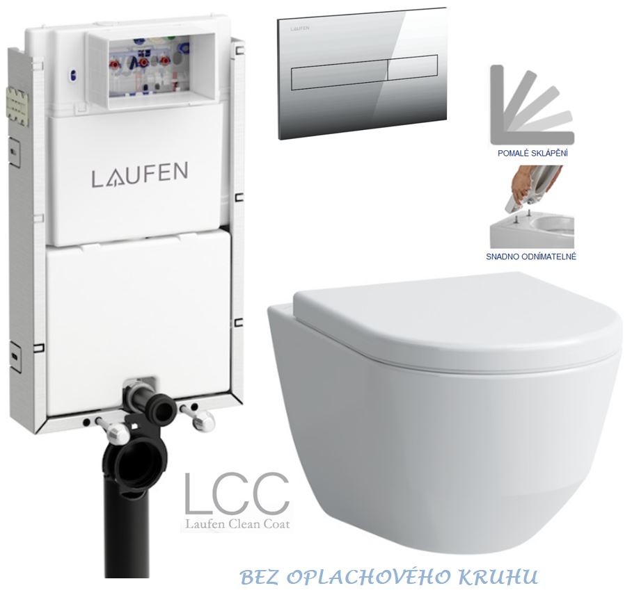 LAUFEN Podomít. systém LIS TW1 SET s chromovým tlačítkem + WC LAUFEN PRO LCC RIMLESS + SEDÁTKO (H8946630000001CR LP2)