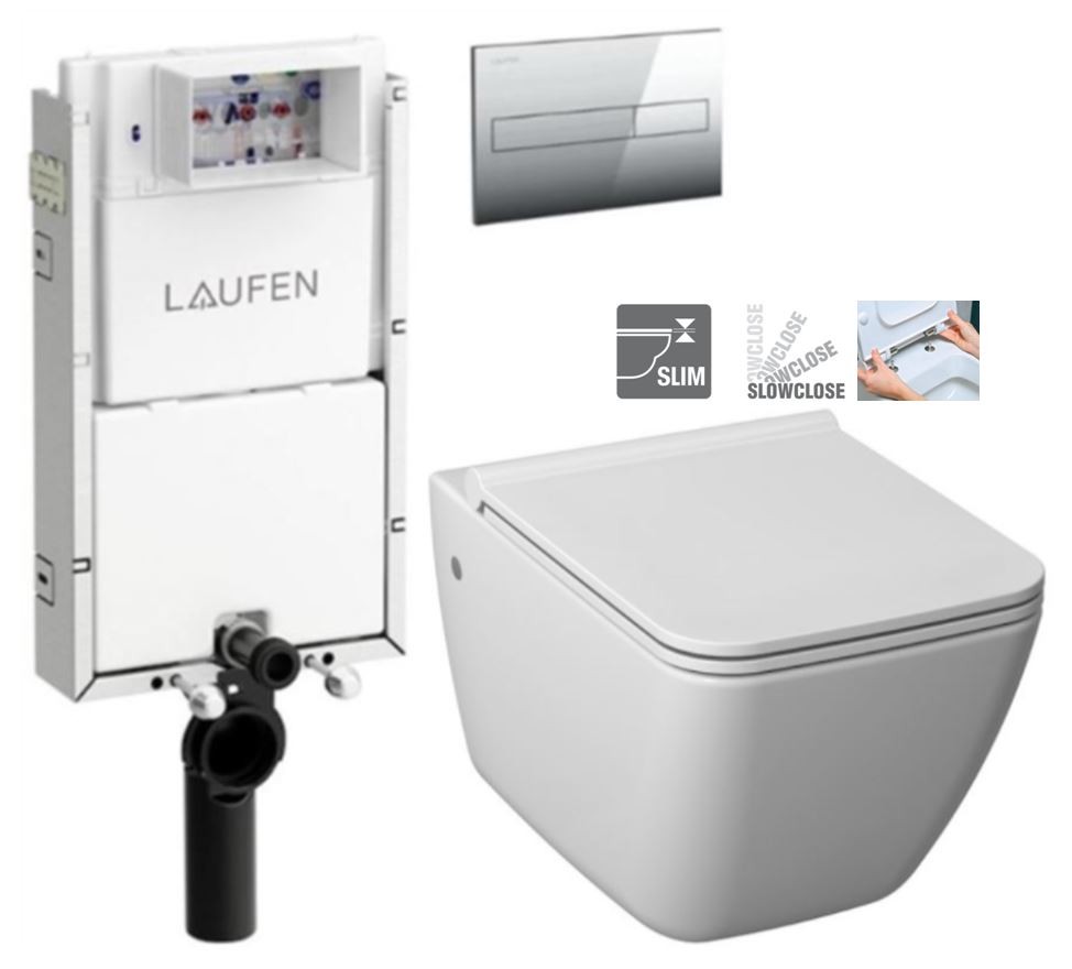 Pozor na výšku osy odpadu, která je oproti běžným klozetům o 3 cm výš. Správné nastavení vypouštěcího ventilu v podomítkovém modulu je splachovací množství 4,5/3l.
