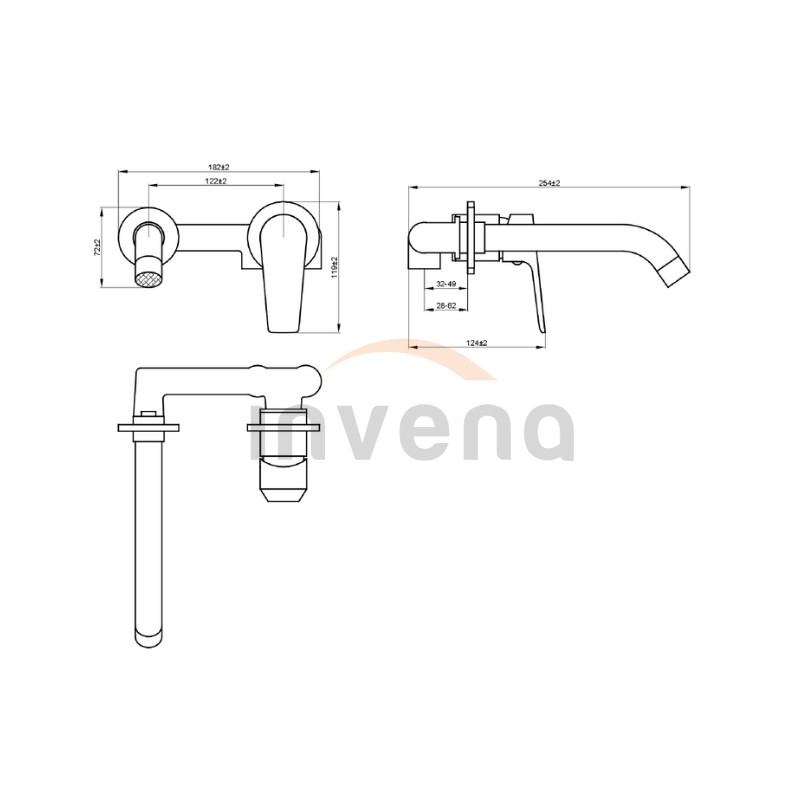 Podomítková baterie výrobce INVENA je vyrobena z mosazi a je potažena povrchovou úpravou, která zajistí, že baterie nebude reznout. Srdcem baterie je keramická kartuše 35 mm.