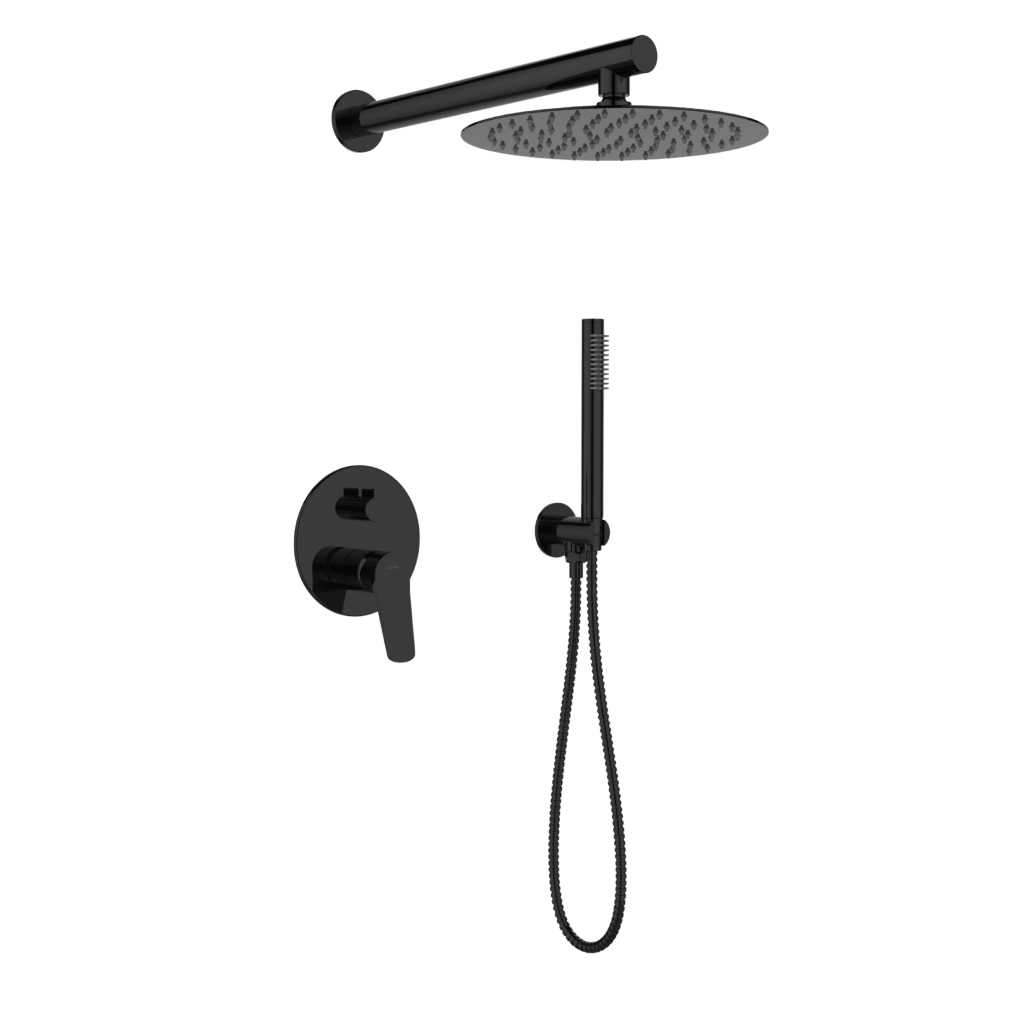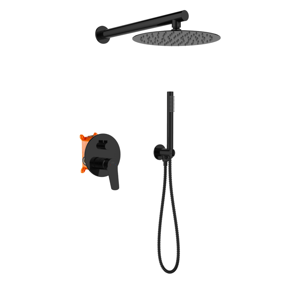 Podomítková baterie ALONIA 2F v lesklé černé barvě je perfektním řešením pro moderní koupelnu. Kulatá sprchová hlavice s dešťovým efektem o průměru 25 cm poskytuje luxusní sprchování, zatímco systém proti vodnímu kameni zajišťuje dlouhotrvající výkon tím, že eliminuje usazování vodního kamene. Ruční sprcha a hadice o délce 150 cm dělají sprchování pohodlné a praktické. Montážní krabice usnadňuje rychlou a bezproblémovou instalaci, což je zásadní pro ty, kteří si ve své koupelně cení efektivity a estetiky. Tato sada kombinuje styl s funkčností, takže každodenní používání koupelny je čirým potěšením. ALONIA je vynikající volbou pro ty, kteří hledají elegantní a moderní koupelnové vybavení.