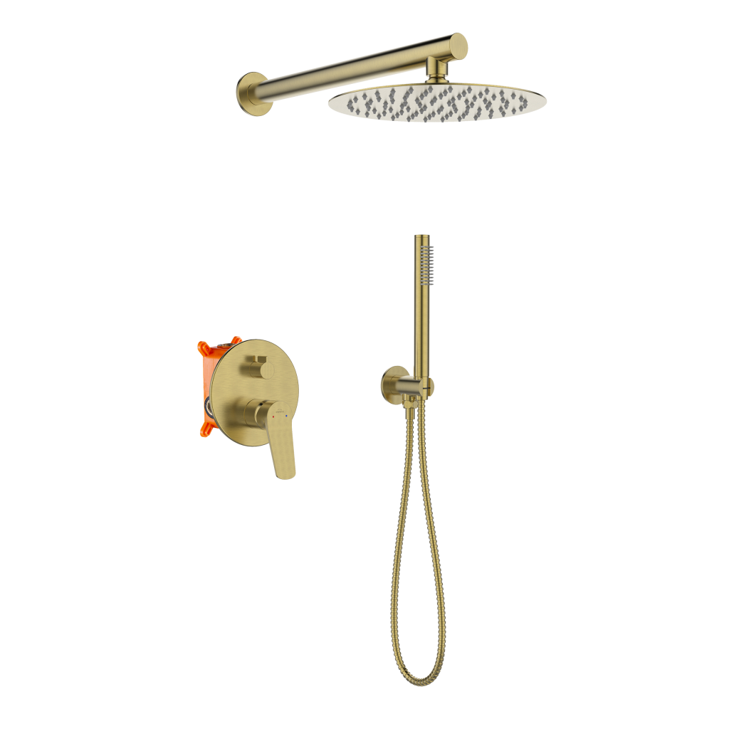 Dodá vaší koupelně luxusní nádech se sprchovou sadou ALONIA s rafinovanou kartáčovanou zlatou povrchovou úpravou. 25cm nerezová hlavice s anti-calc systémem poskytuje příjemný, rovnoměrný proud a snadno se čistí. 40cm sprchové rameno zaručuje pohodlný dosah. Sada obsahuje také 2funkční podomítkovou sprchovou baterii a 2,5cm sprchovou hlavici s jednou funkcí a anti-calc systémem. 150cm dvojitě opletená sprchová hadice z nerezové oceli je odolná a elegantní. Součástí dodávky je montážní krabice, která umožňuje rychlou a esteticky příjemnou instalaci. Tato sada je dokonalou kombinací funkčnosti a stylu a pozvedne každou koupelnu na vyšší úroveň.