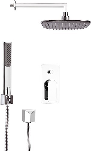 Podomítková sprchová baterie ARNO 09S02 s příslušenstvím. Hvězdná sestava pro váš sprchový kout. Příslušenství přesně podle přání zákazníků. Podomítková baterie, hlavová sprcha s rozměrem 20 × 20 cm a menší ruční sprcha s vývodem ze stěny.