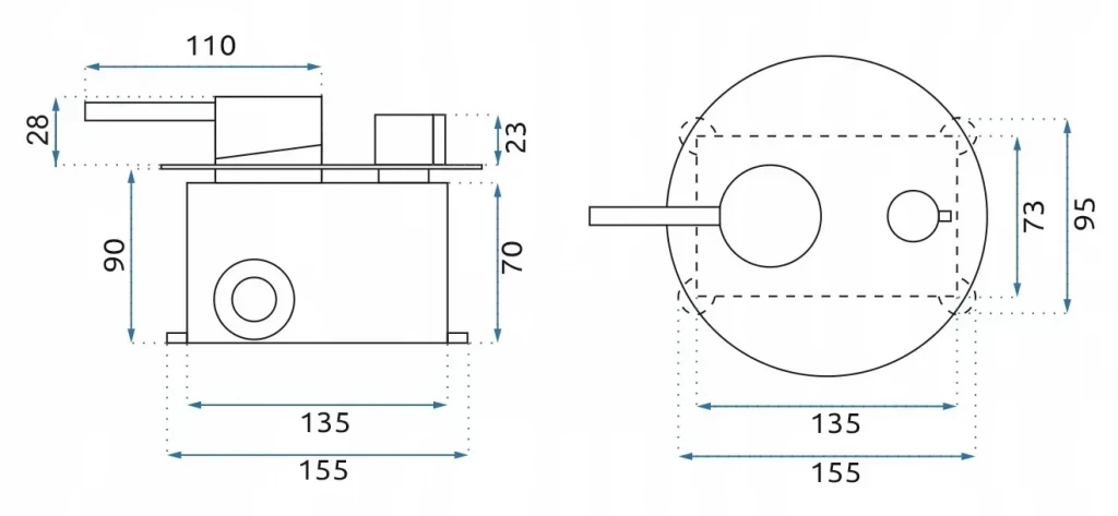 - podomítkový box s malou vodováhou,