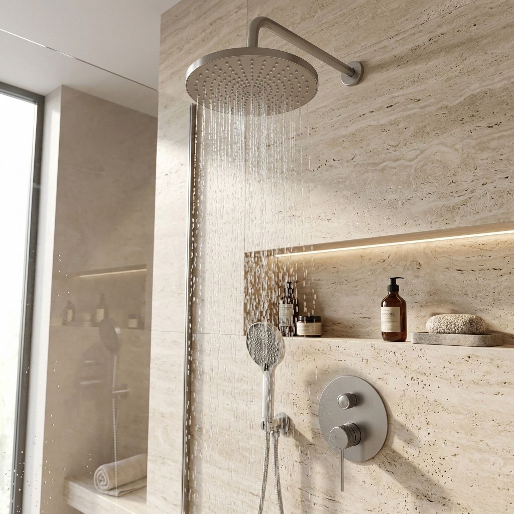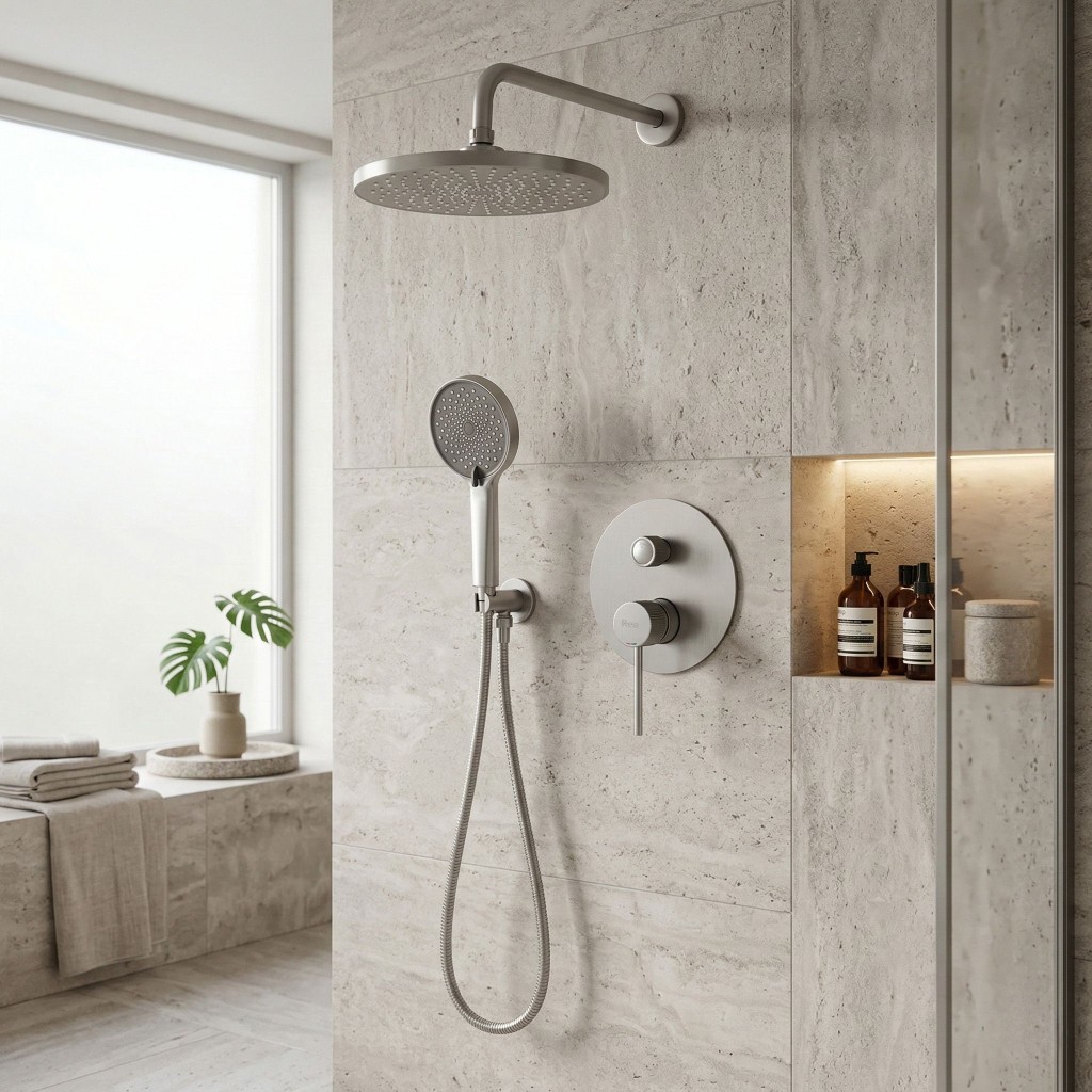 Podomítkový sprchový set Rea Lungo Stripe s kartáčovaným niklovým povrchem je moderní řešení, které je navrženo pro uživatele, kteří očekávají spolehlivost a elegantní vzhled. Ušlechtilý odstín niklu kombinovaný se subtilním kartáčováním a výrazným ryhováním detailů dodává koupelně prestižní a luxusní charakter.Dekorativní Stripe rýhování – charakteristické drážky na úchopových rukovětích batérie jsou stylovým detailem, který přitahuje pozornost a zaručuje jistý úchop při ovládání vody mokrými rukama.Moderní podomítkový systém BOX – estetické umístění umožňuje skrýt připojení ve stěně. Inovativní kazeta (Box) usnadňuje instalaci a zajišťuje pohodlný bezpečný přístup k servisnímu údržbě v budoucnu bez nutnosti rozbíjení obkladaček.Kartáčovaný niklový povrch – odolné matné provedení efektivně skrývá otisky prstů a dodává interiéru eleganci a styl. Perfektně se hodí k dalším prvkům ze série Lungo.Dešťová sprcha s širokým proudem – plochá kulatá hlavice sprchy na stěnovém rameni poskytuje rovnoměrný, relaxační tok vody. Sada doplňuje praktická ruční sprcha s flexibilní hadicí.Odolné materiály – set je vyroben z vysoce kvalitního mosazi a odolného plastu, což zaručuje plnou odolnost proti vlhkosti, korozi a bezproblémové používání po mnoho let.Systém Anti-Calc – silikonové trysky na dešťové sprše a ruční sprše zabraňují usazování vodního kamene z tvrdé vody, což značně usnadňuje pravidelnou údržbu a prodlužuje životnost sprchového systému.Výběrem kompletního sprchového setu Lungo Stripe se systémem Box investujete do inteligentního řešení, které spojuje vysokou estetiku, bezpečnost a pohodlí. Minimalistický silueta a sofistikované rýhované detaily dokonale doplní každou stylovou koupelnovou zónu.