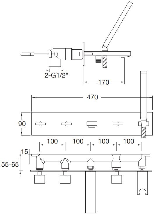 Podomítková vanová baterie 5-otvorová včetně montážního tělesa, chrom (160 2692)