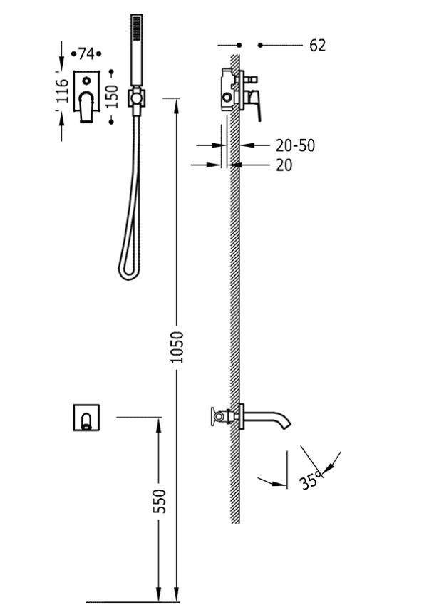 · Kolínko nástěnným přívodem