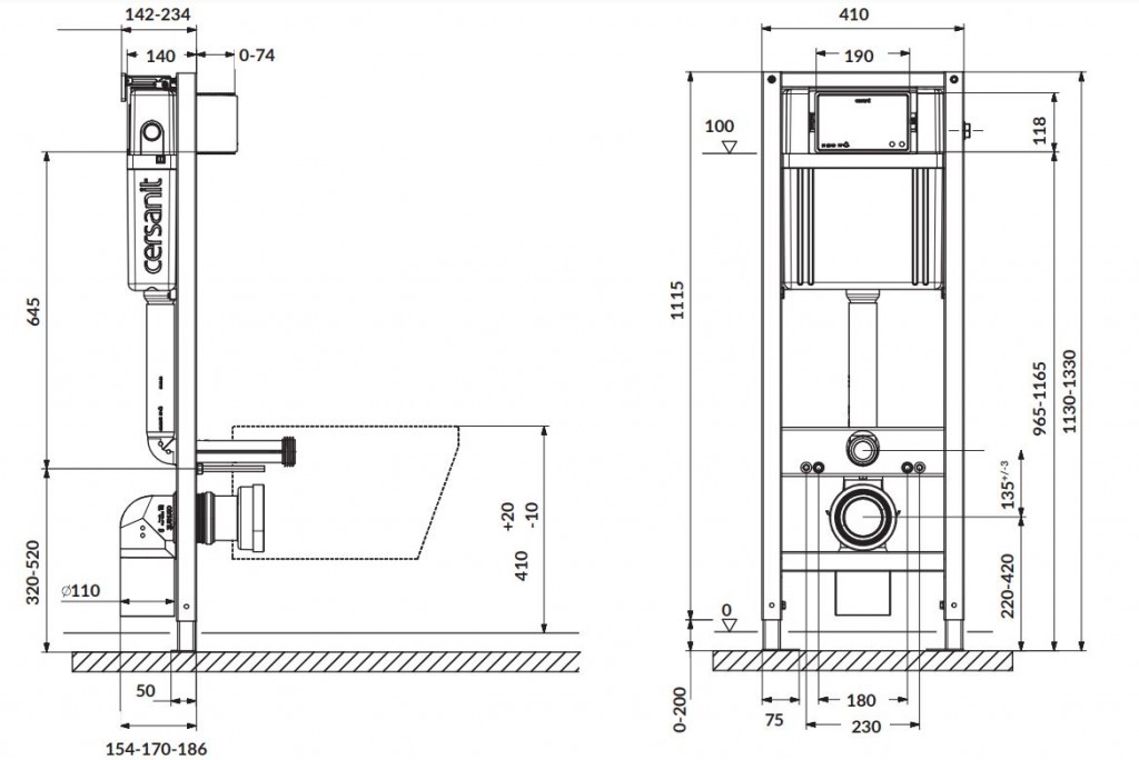 Rám pro WC, pro suchou instalaci. Odolný, úzký rám - pouze 41 cm. Zaručuje dlouhé a bezproblémové používání.