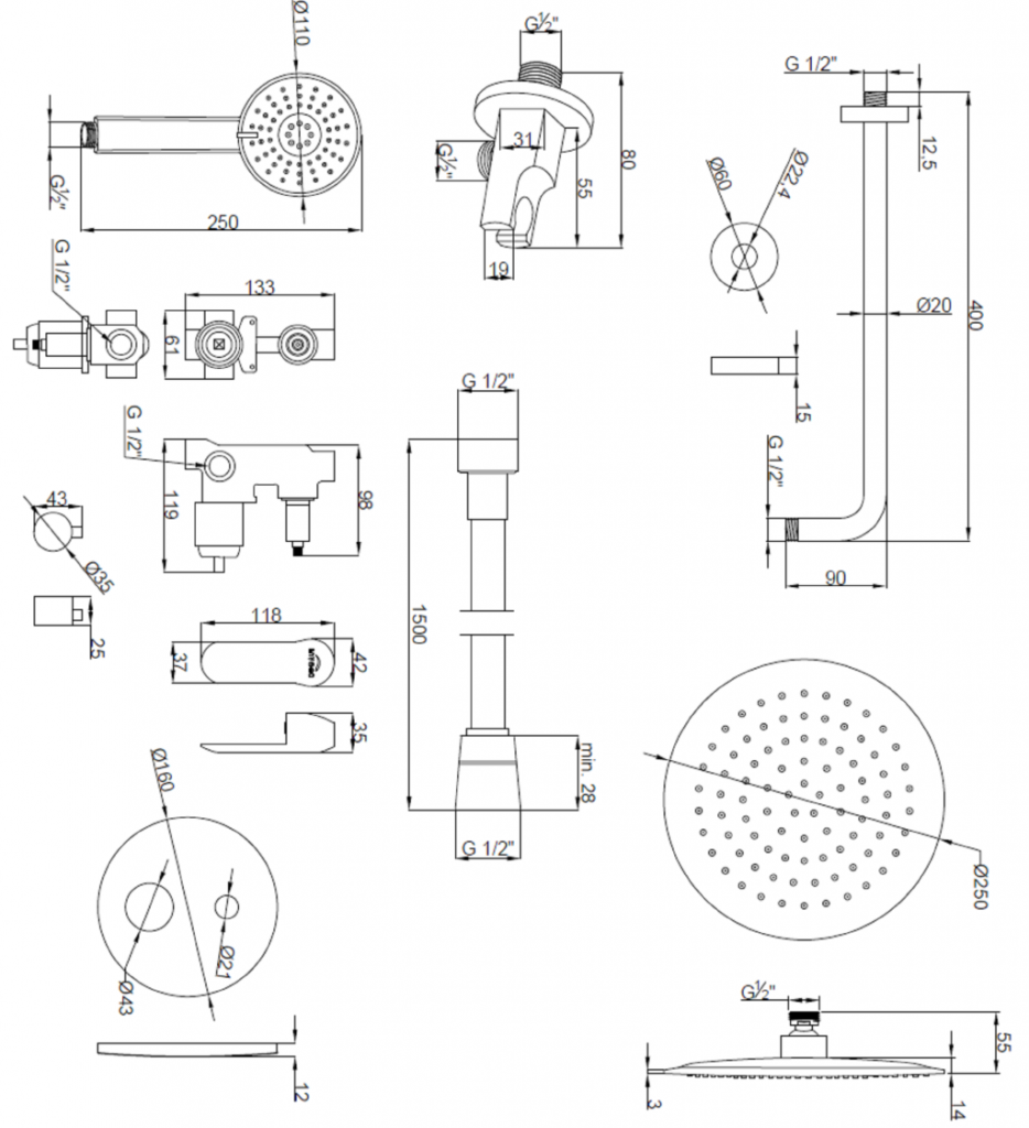 | Dešťová sprcha | Ø 25 cm SLIM, ANTI-CALC, ABS |