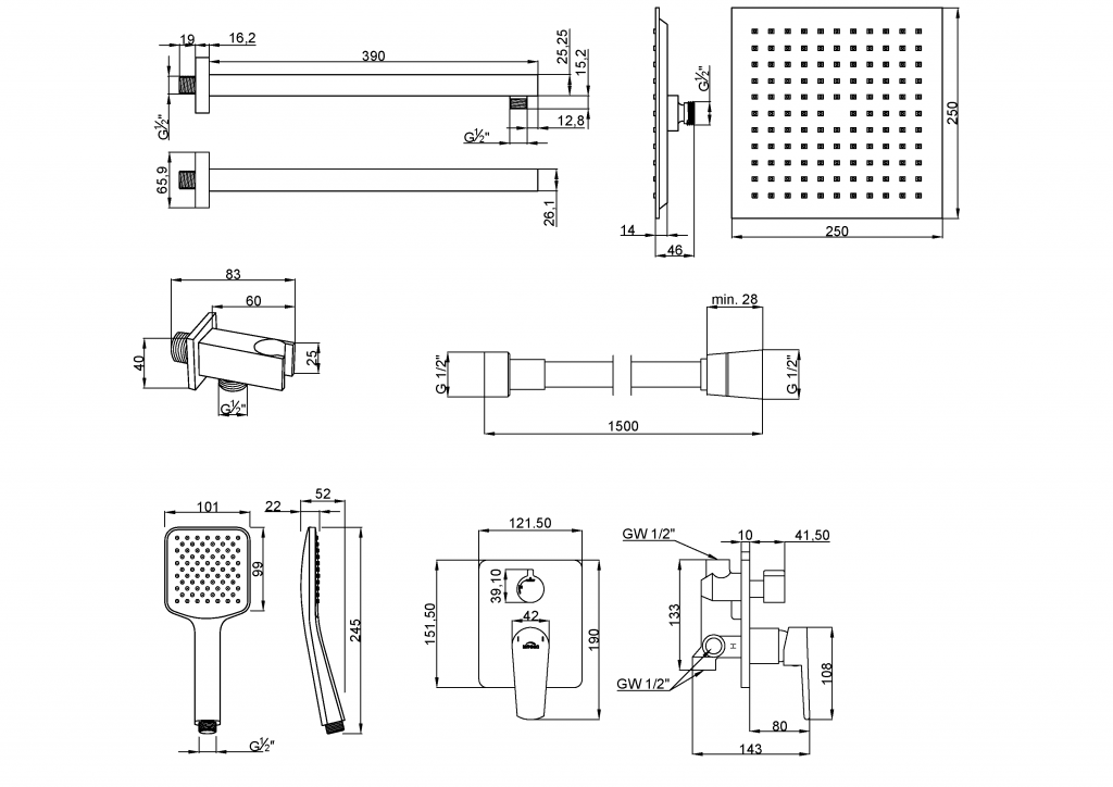 Série obsahuje: umyvadlovou baterii, vysokou umyvadlovou baterii, oceněný sprchový sloup, sprchovou baterii, vanovou baterii, bidetovou baterii, sprchový set a dřezovou baterii.