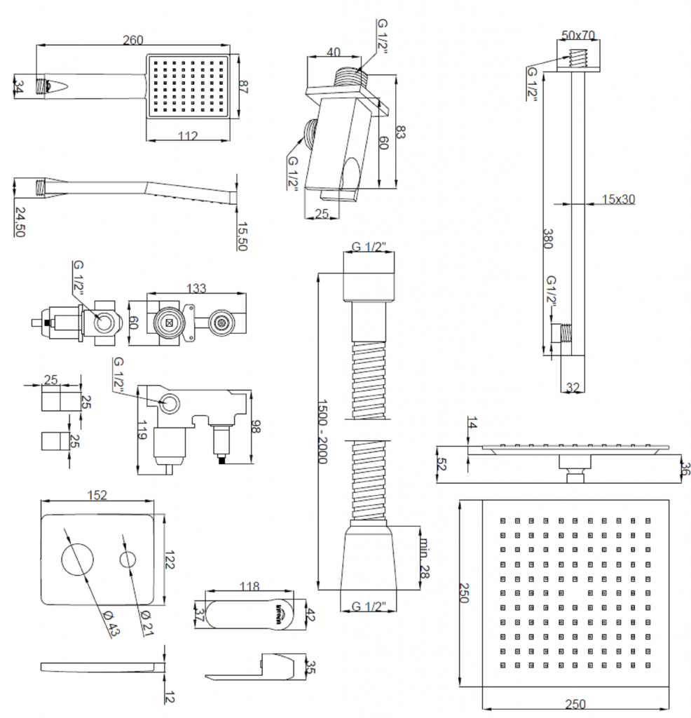 Baterie podomítkové setu od výrobce INVENA je vyrobena z mosazi a je potažena povrchovou úpravou, která zajistí, že baterie nebude reznout. Srdcem baterie je keramická kartuše 35 mm.