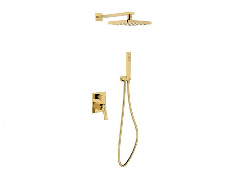 Jedinečný podomítkový set s příslušenstvím ASPIRA I ve zlaté barvě s kvalitní keramickou kartuší KEROX. Kompletní řešení pro váš sprchový kout. Set obsahuje podomítkovou baterii, hlavovou sprchu s držákem, vývod ze stěny s držákem, ruční sprchu a hadici. Baterie je dodávána včetně podomítkového modulu, ten výrazně usnadňuje montáž. Dodáváme ve čtyřech barvách a to lesklý chrom, černá matná, grafitová nebo zlatá.