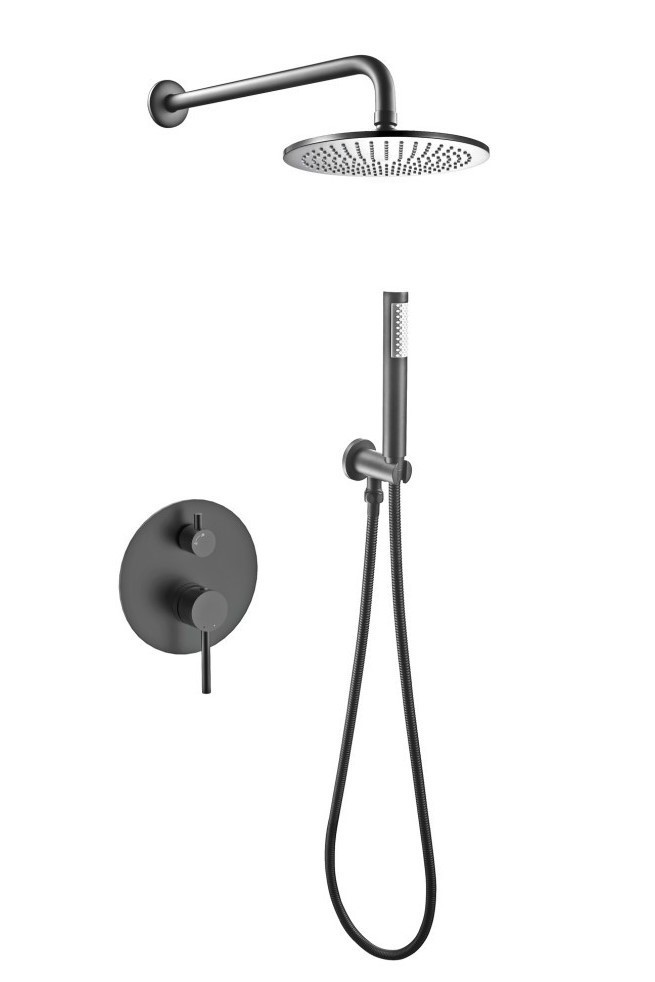Jedinečný podomítkový set s příslušenstvím DECCO/ILLUSION I/VEO grafitová barva. Kompletní řešení pro váš sprchový kout. Set obsahuje podomítkovou baterii, hlavovou sprchu s držákem, vývod ze stěny s držákem, ruční sprchu a hadici. Baterie je dodávána včetně podomítkového modulu, ten výrazně usnadňuje montáž. Dodáváme v šesti barvách a to lesklý chrom, černá, grafitová, zlatá, zlatá lesklá, zlatá broušená.