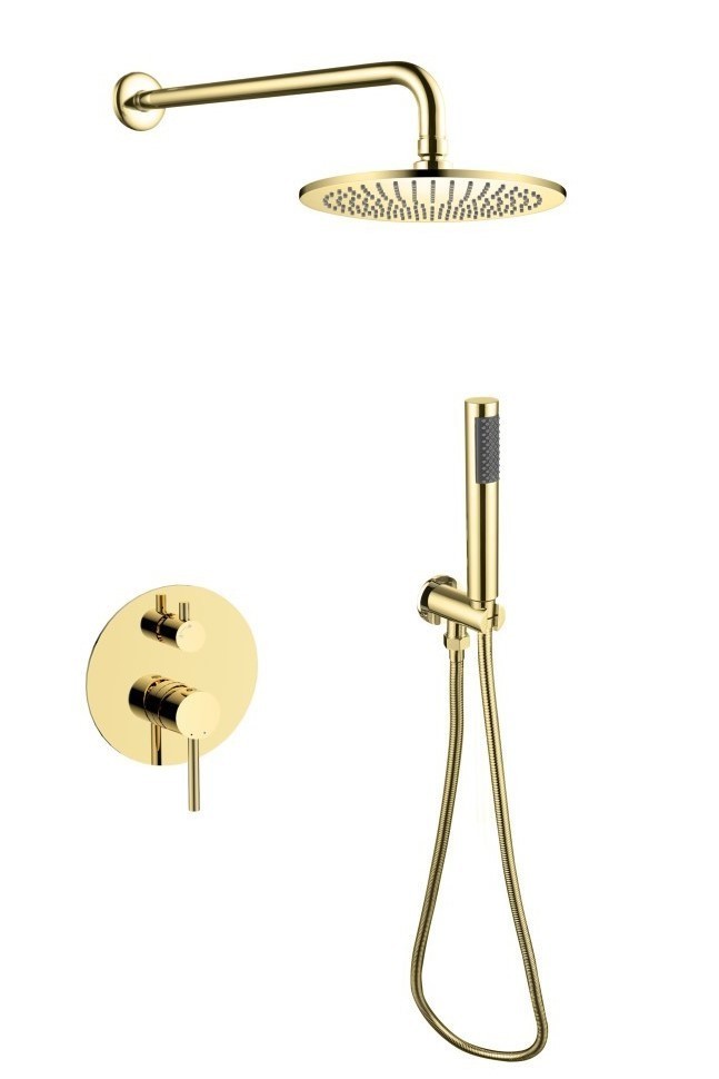 Jedinečný podomítkový set s příslušenstvím DECCO/ILLUSION I/VEO zlatá barava. Kompletní řešení pro váš sprchový kout. Set obsahuje podomítkovou baterii, hlavovou sprchu s držákem, vývod ze stěny s držákem, ruční sprchu a hadici. Baterie je dodávána včetně podomítkového modulu, ten výrazně usnadňuje montáž. Dodáváme v šesti barvách a to lesklý chrom, černá, grafitová, zlatá, zlatá lesklá, zlatá broušená.