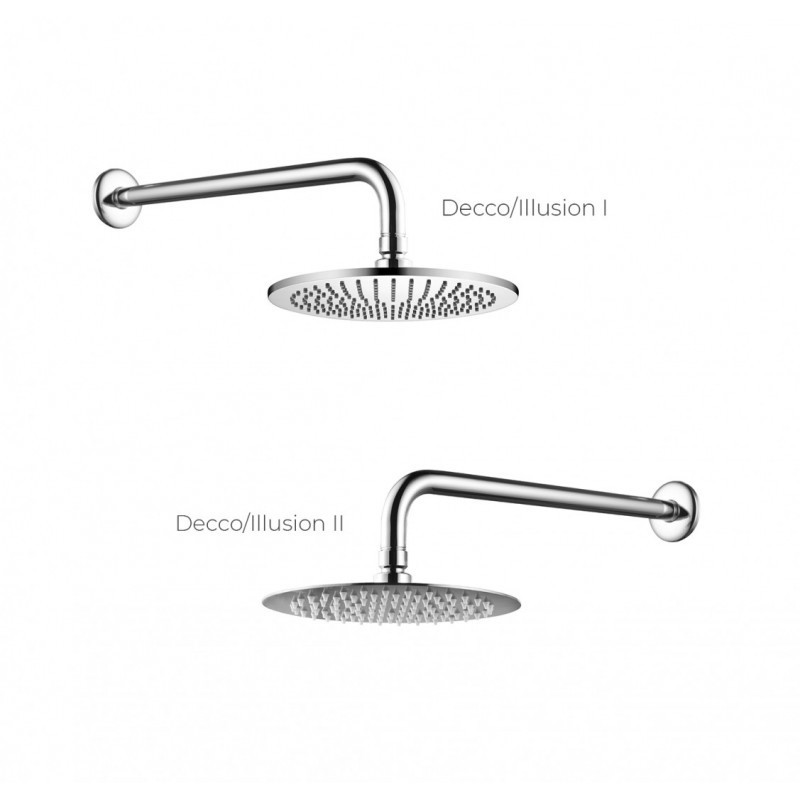 Součástí balení je podomítková baterie DECCO/ILLUSION I/VEO + podomítkový montážní box + ruční sprcha + sprchová hadice + vývod a držák ruční sprchy + hlavová sprcha s držákem.