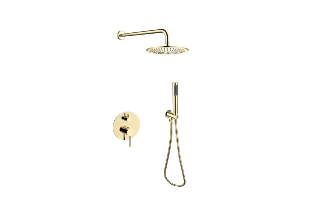 Jedinečný podomítkový set s příslušenstvím DECCO/ILLUSION I zlatá lesklá barava. Kompletní řešení pro váš sprchový kout. Set obsahuje podomítkovou baterii, hlavovou sprchu s držákem, vývod ze stěny s držákem, ruční sprchu a hadici. Baterie je dodávána včetně podomítkového modulu, ten výrazně usnadňuje montáž. Dodáváme v šesti barvách a to lesklý chrom, černá, grafitová, zlatá, zlatá lesklá, zlatá broušená.