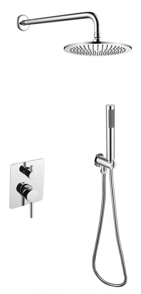 - Set obsahuje podomítkovou baterii, vývod ze stěny, ruční sprchu, hadici sprchy a držák