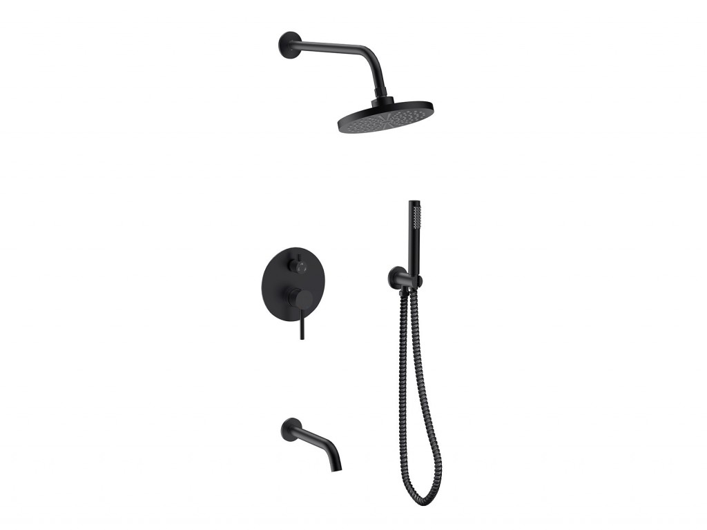 Jedinečný podomítkový set s příslušenstvím VEO černá barva. Kompletní řešení pro vaši vanu. Set obsahuje podomítkovou baterii (box), vývod ze stěny s držákem, včetně ruční sprchy a hadice, dále držák a kulatou hlavovou sprchu a v neposlední řadě praktický stěnový vývod. Baterie je dodávána včetně podomítkového modulu (boxu), ten výrazně usnadňuje vlastní montáž. Dodáváme v šesti barvách a to lesklý chrom, černá, grafitová, zlatá, zlatá lesklá, zlatá broušená.