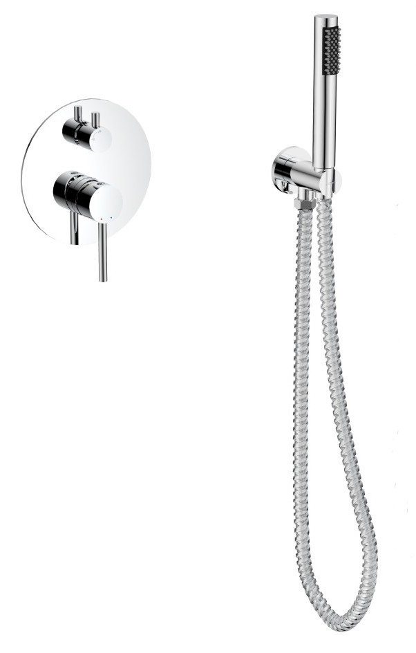 - Set obsahuje podomítkovou baterii, vývod ze stěny s držákem, ruční sprchu a hadici