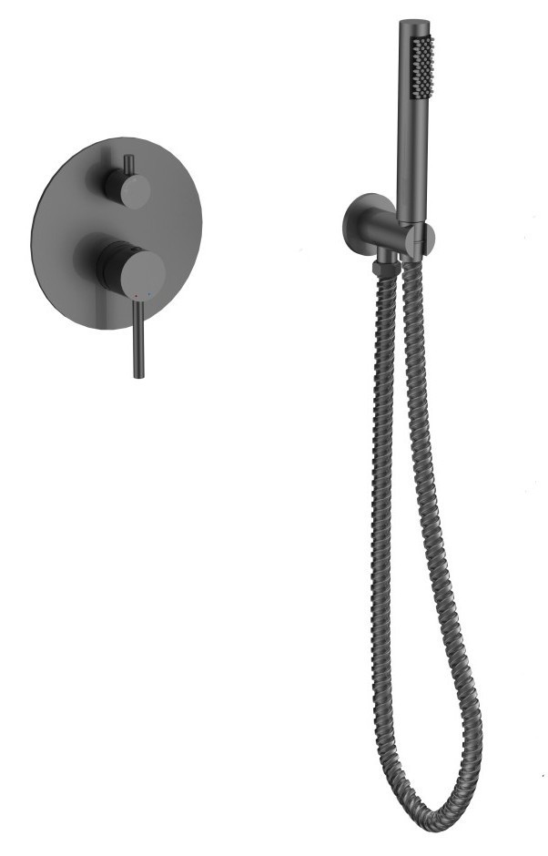 Jedinečný sprchový/vanový podomítkový set s příslušenstvím VEO v grafitové barvě. Kompletní řešení pro vaši vanu. Set obsahuje podomítkovou baterii, vývod ze stěny s držákem, ruční sprchu a hadici. Baterie je dodávána včetně podomítkového modulu, ten výrazně usnadňuje montáž. Dodáváme v pěti barvách chrom, černá, grafitová, zlatá a zlatá jasná.