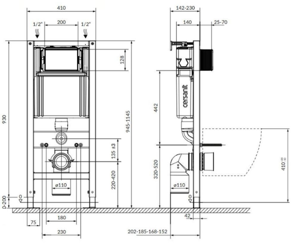 Rám AQUA 40 je určen do menších a nestandardních koupelen. Skvěle se hodí mimo jiné do koupelen se šikmým stropem, kde jsou tradiční rámy příliš vysoké. Volba místa instalace splachovacího tlačítka není omezením, protože rámy jsou vybaveny dvěma kontrolními otvory, které umožňují volitelnou instalaci splachovacího tlačítka zepředu nebo shora.