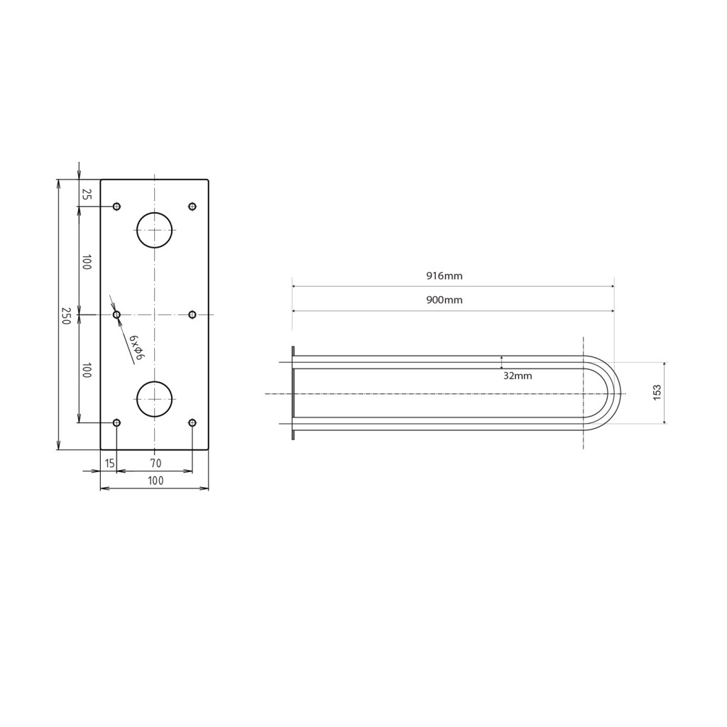 K uchycení jsou dodávány nerez šrouby podle DIN 95, 6×60 mm s hmoždinkami z plastu pro montáž do plných cihel a betonu.