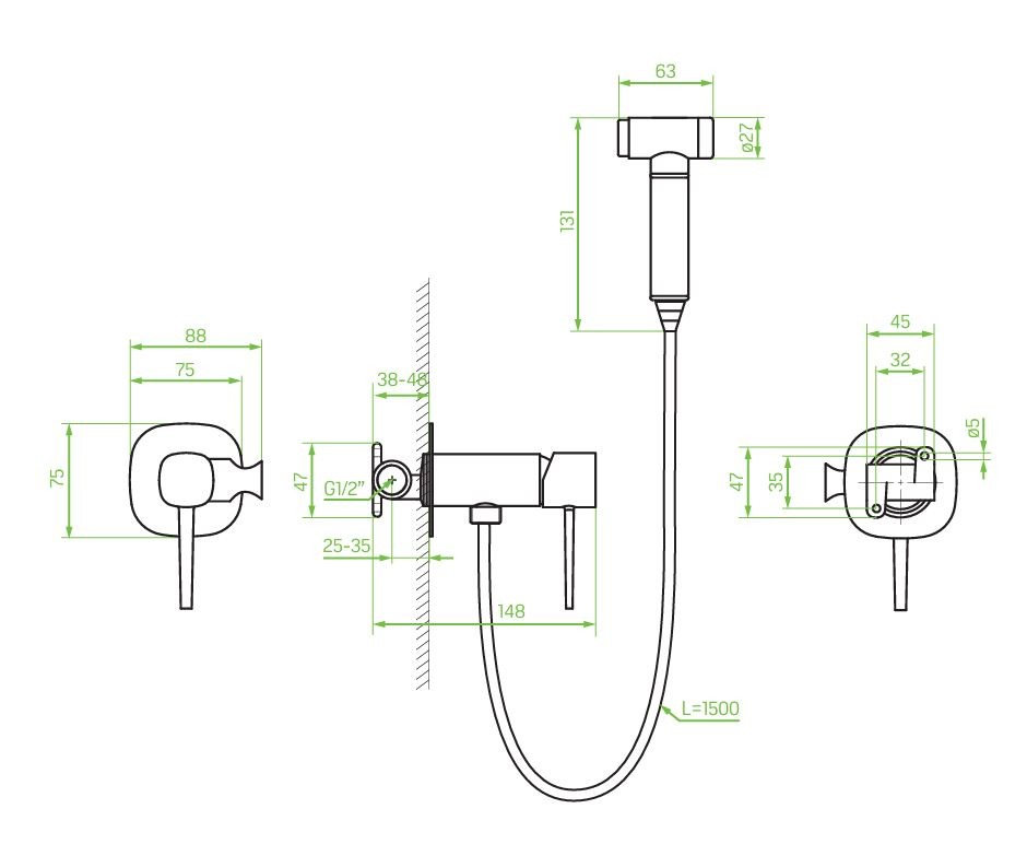 Skrytá instalace šetří místo a zvyšuje její estetický vzhled. To vám umožňuje používat tradiční toaletní mísu jako bidet, což je obzvláště užitečné v malých koupelnách, kde není místo pro další toaletu. Vodní tryska s efektem deště umožňuje pohodlné a rychlé čištění. Stejně jako celá řada Pola má i tato skrytá bidetová baterie štíhlou, plochou páku, která dodává jejímu zaoblenému tělu nádech elegance. Model je vybaven kovovou ruční sprchou, která je umístěna v praktické rukojeti integrované s baterií. Tlačítko na horní straně ruční sprchy rychle zastaví proud vody. Sprchová hadice o délce 150 centimetrů má systém proti přetočení, který zabraňuje jejímu zamotání.