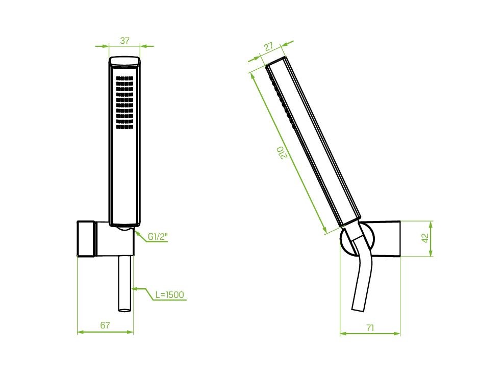 Tato elegantní ruční sprcha se vyznačuje moderním minimalistickým designem s hranatými liniemi. Je ideálním doplňkem do koupelen zařízených v industriálním nebo moderním stylu.