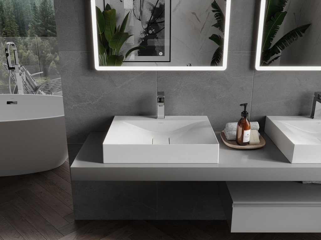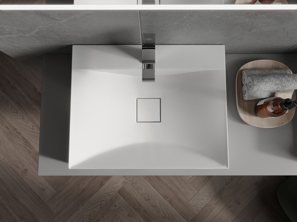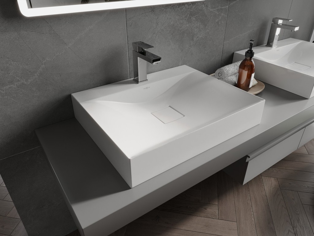 Umyvadlo na desku POLI od výrobce MEXEN je vyrobeno z konglomerátu /litého mramoru/. Vyznačuje se hladkým povrchem a vysokou odolností vůči mechanickému poškození a tvorbou škrábanců. Jeho rovné a ostré hrany vytvářejí perfektní minimalistický design. Můžete jej namontovat na desku nebo na koupelnovou skříňku a zároveň tak ušetřit drahocenný prostor kolem umyvadla.