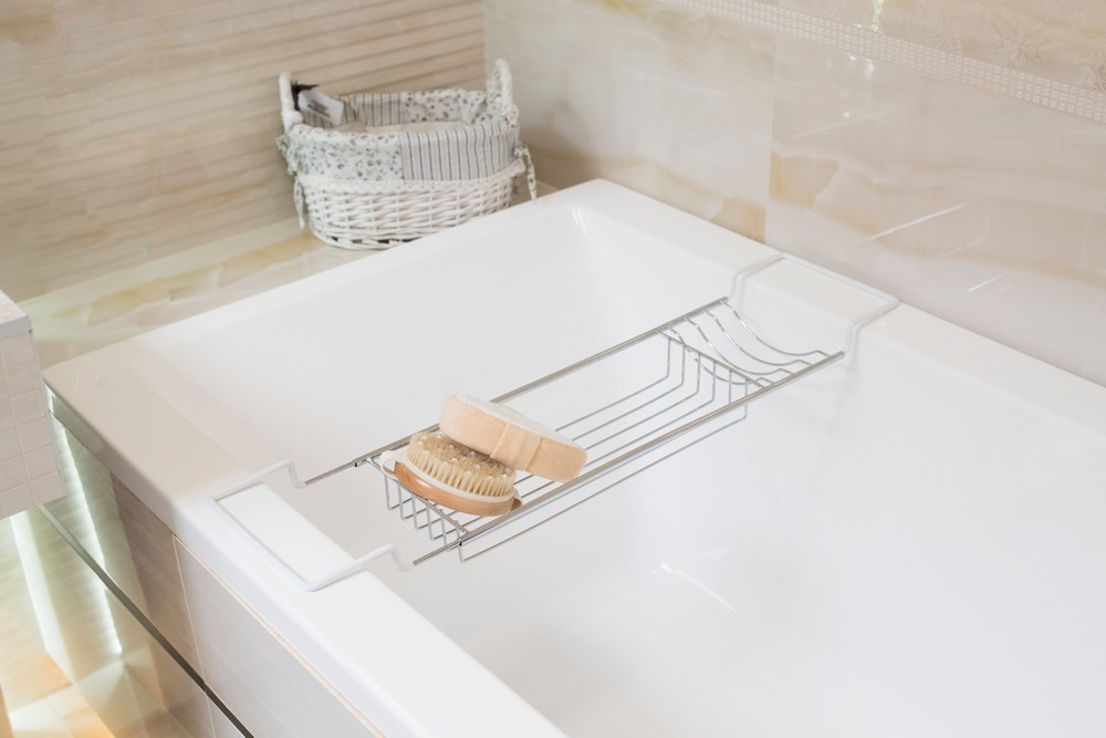 Univerzální a praktická polička do vany z lesklého chromovaného kovu. Boky police byly chráněny speciálním bílým plastem, který je určen k ochraně okrajů vany před poškrábáním. Drátěnou polici lze nastavit na šířku a k vaně.