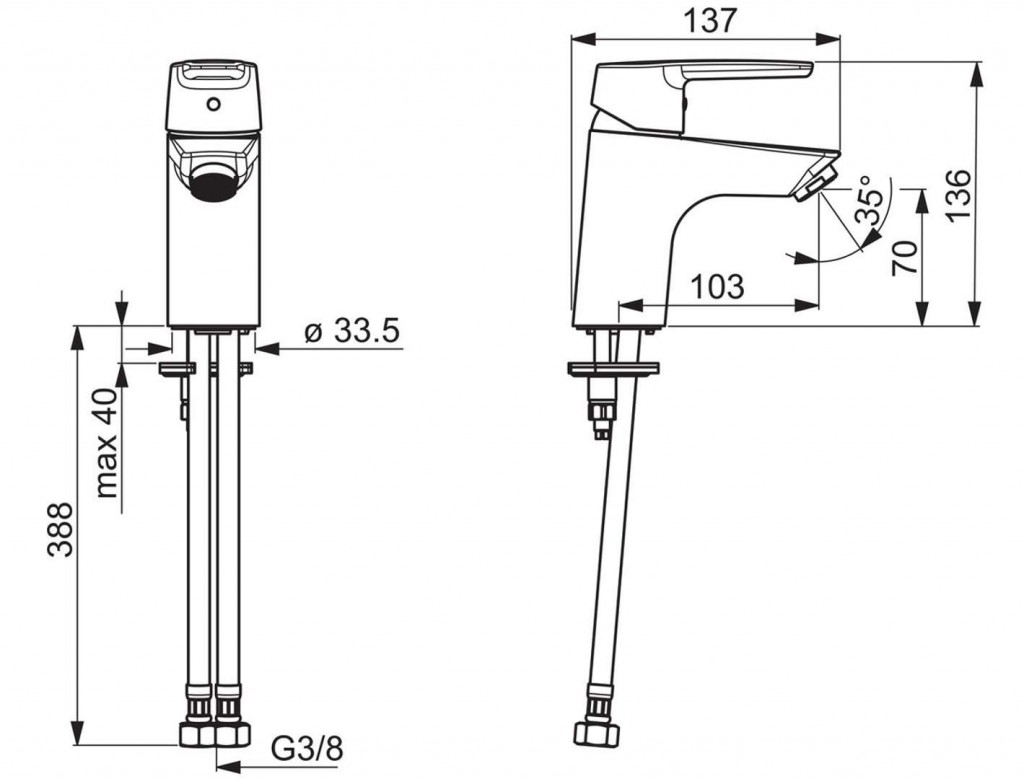- keramická kartuše 35 mm pro ovládání teploty a průtoku vody