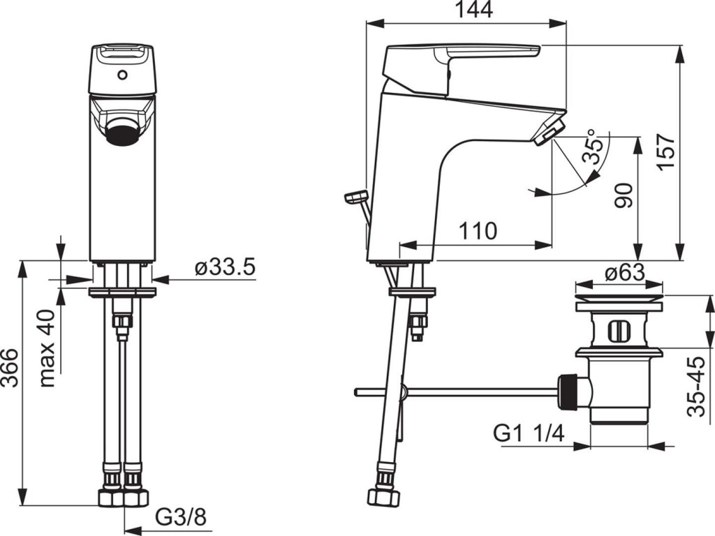 - keramická kartuše o průměru 35 mm pro ovládání teploty a průtoku vody