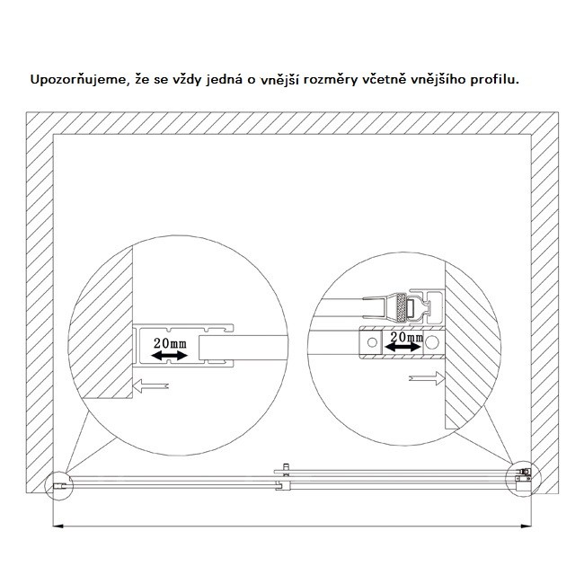 - Způsob otevírání: posuvné sprchové dveře