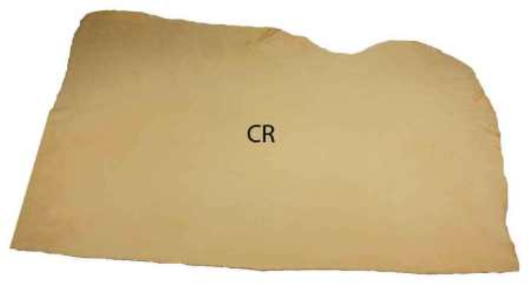 Popis: Semišová kůže z ovčí kůže, čistě tukově vydělaná (činěná).