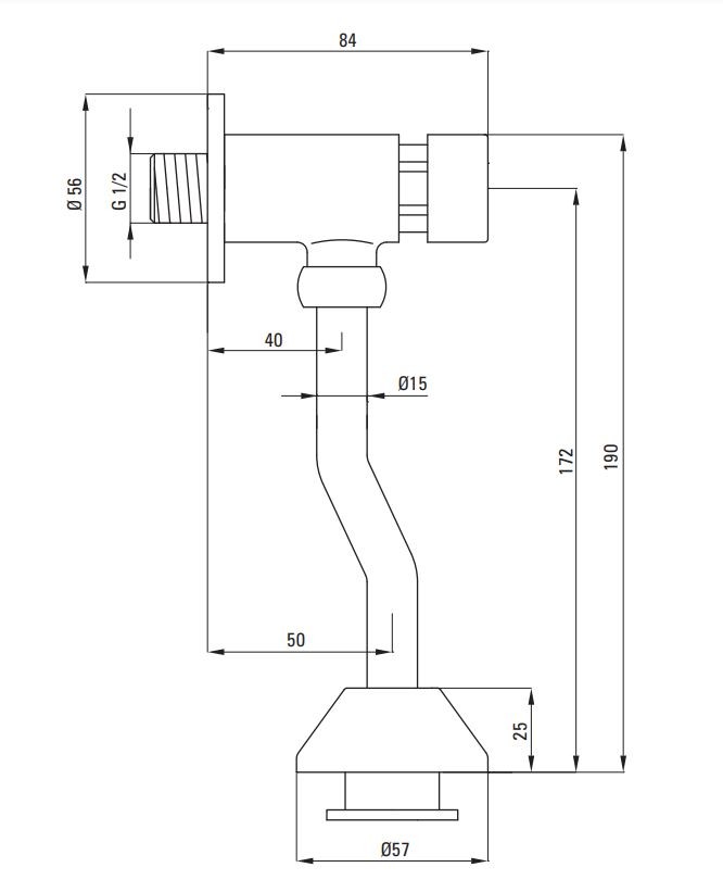 Pisoárová baterie vyrobená z nejkvalitnější mosazi je extrémně odolná a odolná i při intenzivním používání na veřejných místech. Tělo je vyvedeno v elegantním chromu, který se snadno udržuje v čistotě. Mechanismus se snadno aktivuje stisknutím. Disponuje časovačem, který po určité době automaticky vypne vodu.