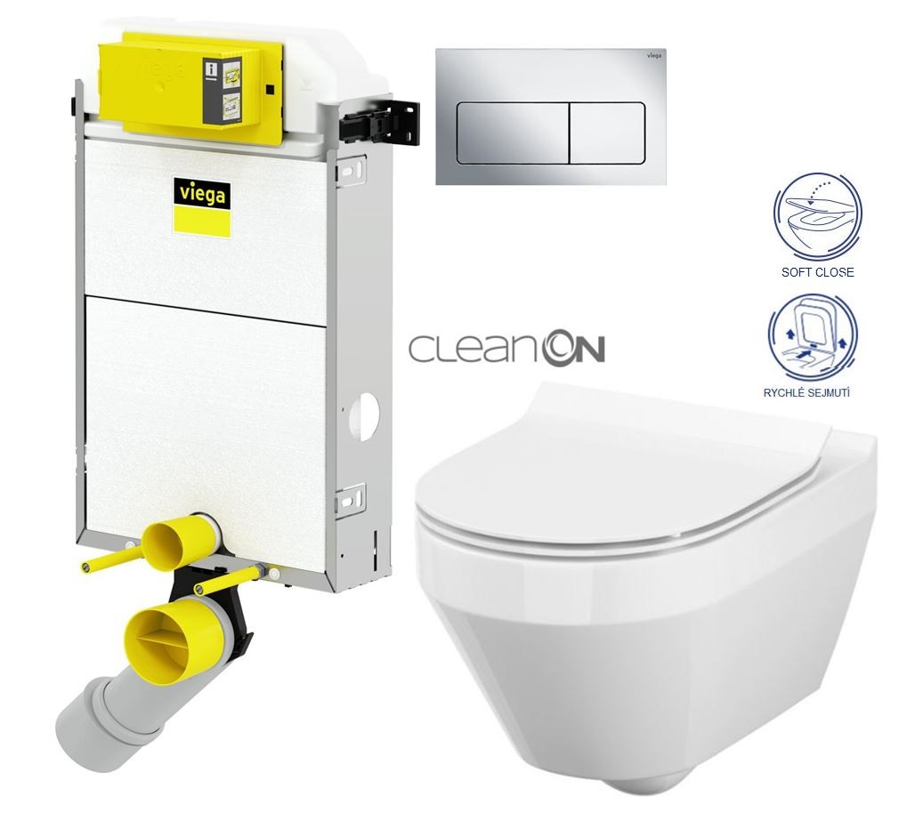 VIEGA Presvista modul PURE pro WC včetně tlačítka Life5 CHROM + WC CERSANIT CLEANON CREA OVÁL + SEDÁTKO V771928 LIFE5CR CR1