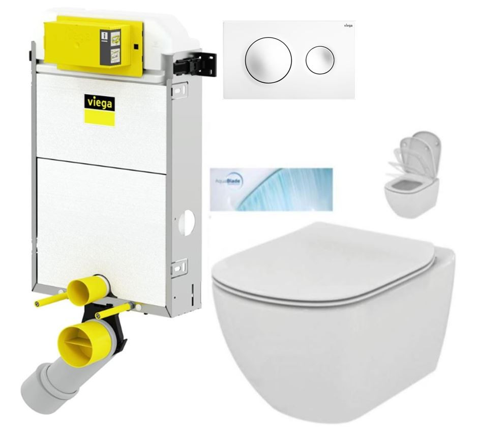 VIEGA Presvista modul PURE pro WC včetně tlačítka Style 20 bílé + WC Ideal Standard Tesi se sedátkem SoftClose, AquaBlade V771928 STYLE20BI TE1