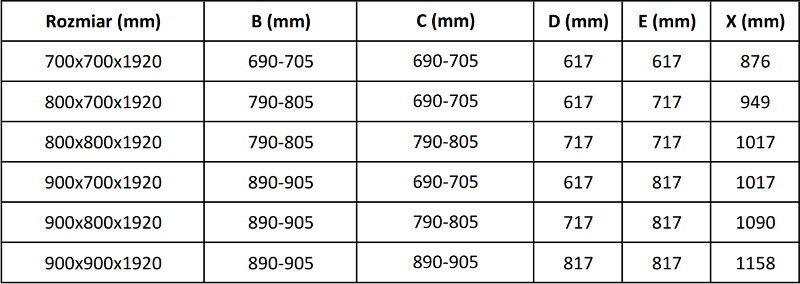 - rozměr: 70x70x192 cm