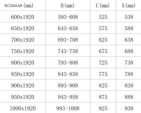 Instalační rozměr křídlových dveří do sprchového koutu je 893-908 mm. Vstup do sprchy budete mít 82,5 cm.
