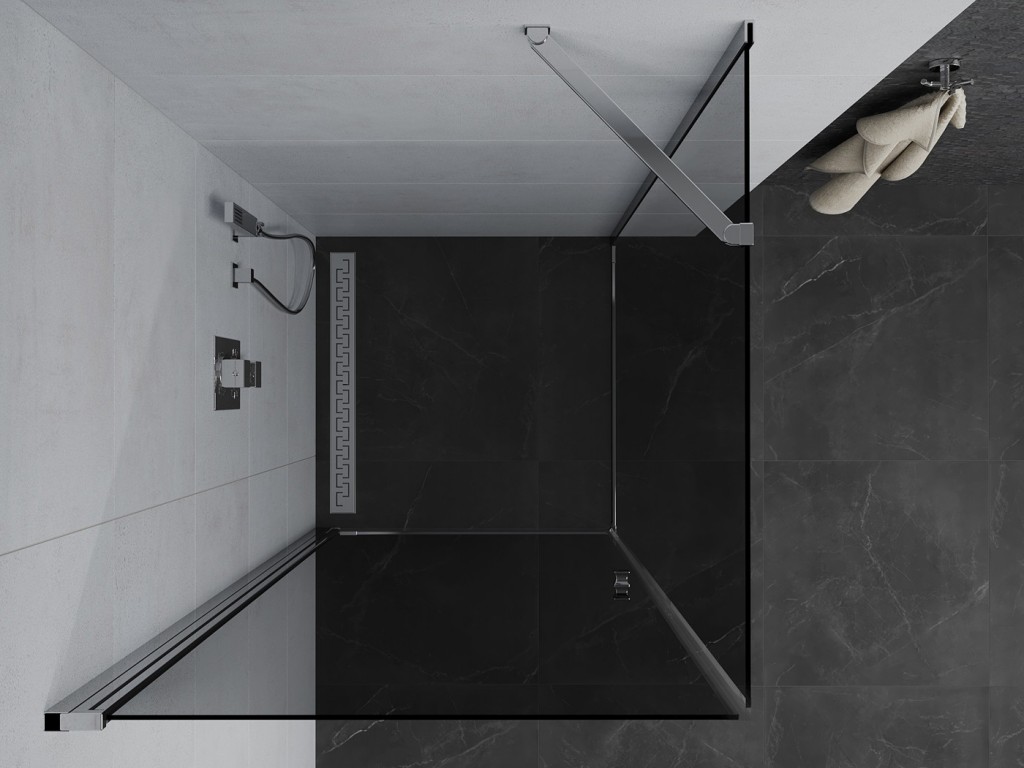 PRETORIA křídlové dveře 80x190 cm 6mm, chrom, grafit se stěnovým profilem (852-080-000-01-40)